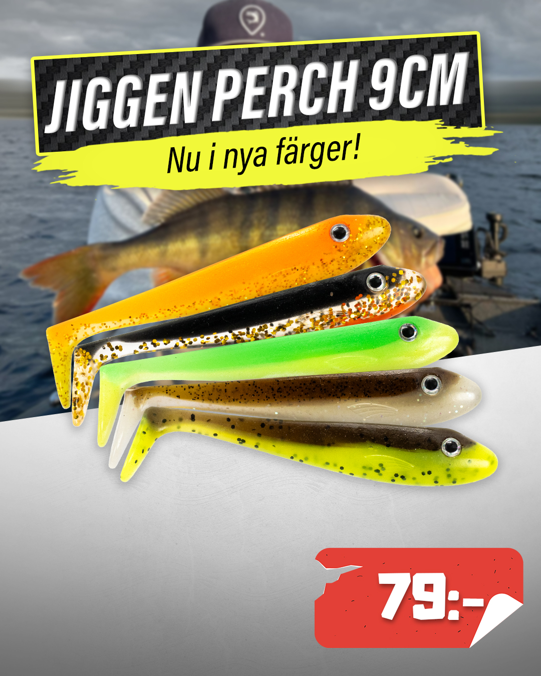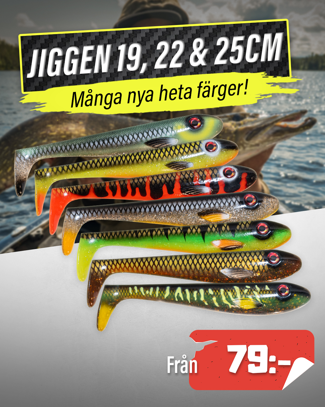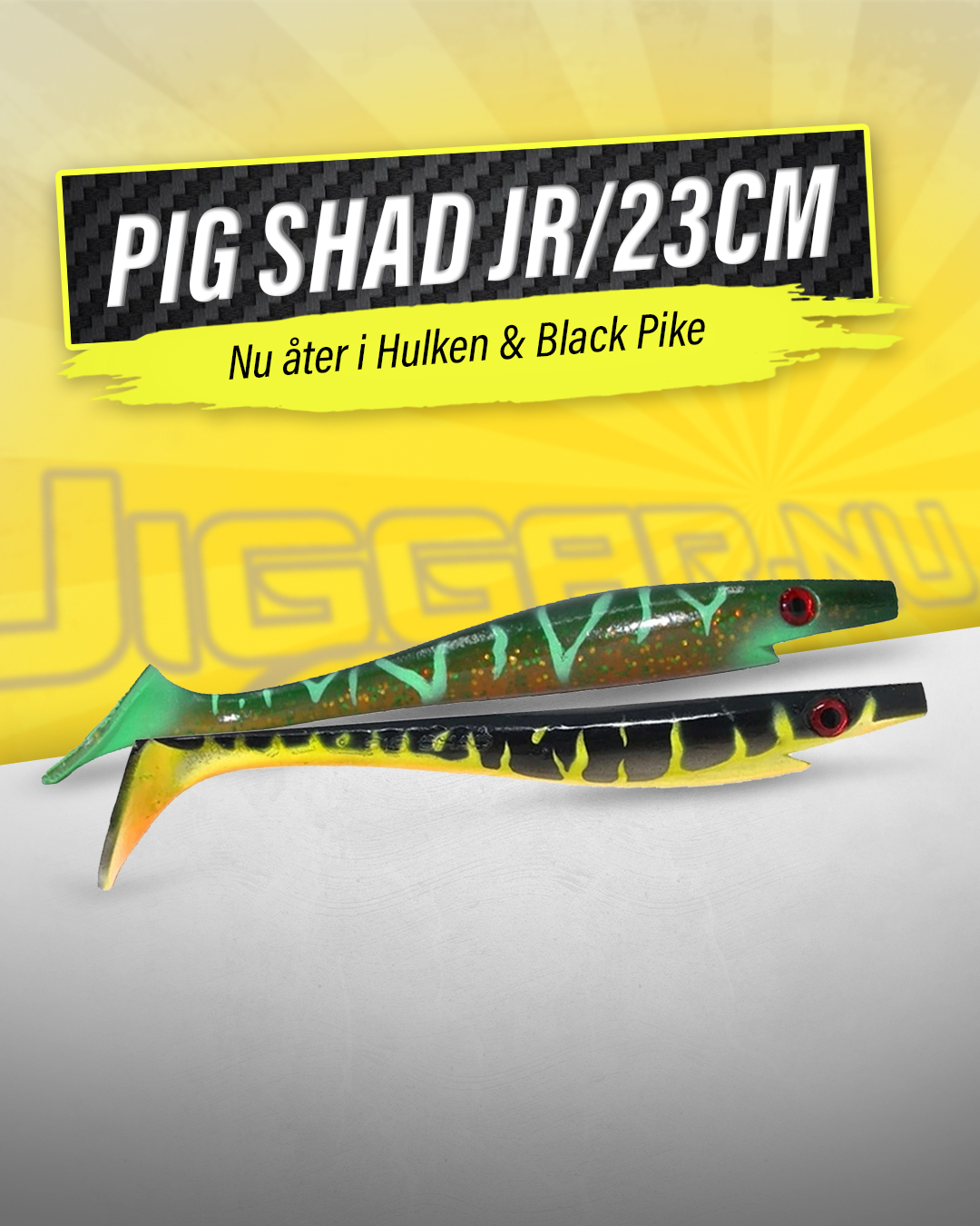 Vi har våra egna jiggar och gummibeten som vi kallar för Jiggen av god kvalitet för rätt priser. Jiggen och Jiggen Perch har under åren levererat hundratals fiskar över 100cm med en inrapporterad topp på 125cm och 12,64kg.