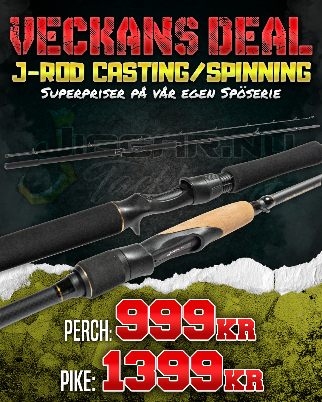 Jiggar.nu är en komplett sportfiskebutik för allt från nybörjare till proffs. Hos oss hittar du alla de hetaste fiskeprylarna och fisketillbehören till bra priser! Vi är återförsäljare för ledande varumärken som exempelvis Abu Garcia, Adventer, Aava, Shimano, Daiwa, Gator, Leech, 13 Fishing, Savage Gear, Vision, Bite of Bleak, Westin, Berkley, Catch with Care (CWC), BFT, Strike Pro, Sufix, Rapala, Darts, Fox Rage, Svartzonker, Penn, Okuma, Humminbird, Minn Kota och många andra. Vi saluför kvalitetsprodukter på nätet och i vår fiskebutik som ligger nära motorvägen, avfart Järna.